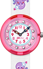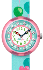 Flik Flak watches have clearly readable dials with strong color contrasts. All hours and five-minute steps are written out, the minutes in-between are marked by small dots. This makes learning to read time easy for your child.