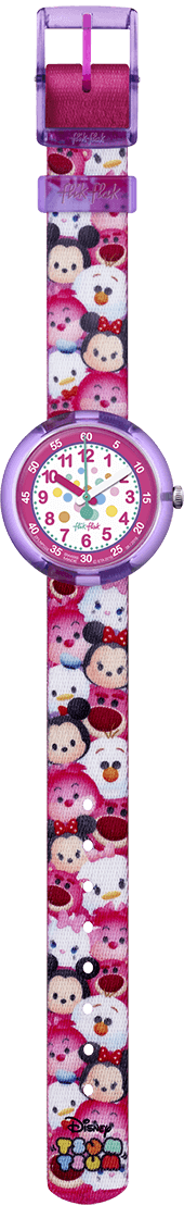 A fluffy invasion is all set to take over a wrist near you! An adorable stack of Disney characters delivers a heap of portable hugs that doubles as a Swiss made precision timekeeper. Telling the time is a dream, with confetti supporting helpful color-coding. DISNEY TSUM TSUM by Flik Flak, a kid watch made in Switzerland.