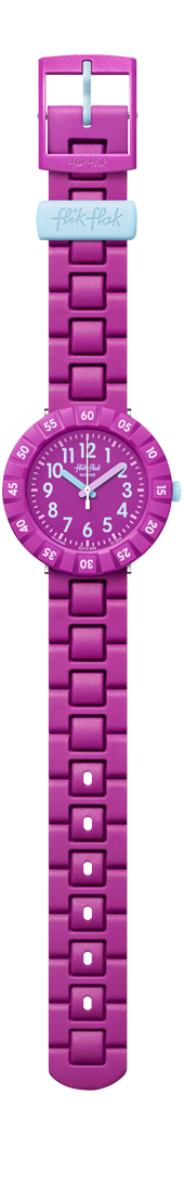 Flik Flak watches have clearly readable dials with strong color contrasts. All hours and five-minute steps are written out, the minutes in-between are marked by small dots. This makes learning to read time easy for your child.
