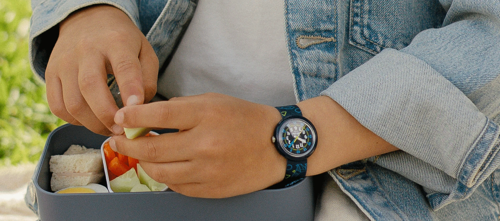 Learning to read the time while making unforgettable memories is hungry work! Kids will be more excited than ever for snack time to roll around thanks to our special Flik Flak x monbento collaboration. This one-of-a-kind collection features not one, but two special Swiss watches for kids that come in a stylish set with a matching lunch box. This cool combo makes a thoughtful, practical and educational gift for kids, teaching them that they need to eat well to grow well. With their trusty watch and reliable lunch box, they’ll be keener than ever to pack a healthy treat and head off to the great outdoors for a playdate. |
